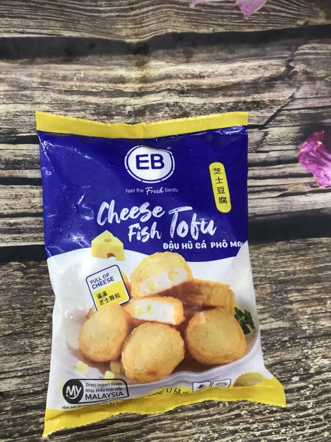 Đậu hũ cá nhân phô mai Malaysia EB được làm từ thịt cá tươi xay nhuyễn, có dạng hình tròn, vỏ ngoài dai nhẹ hòa với độ mọng của tàu hũ và mùi thơm từ cá kết hợp với nhân phô mai béo ngậy giúp món ăn trở nên hấp dẫn.